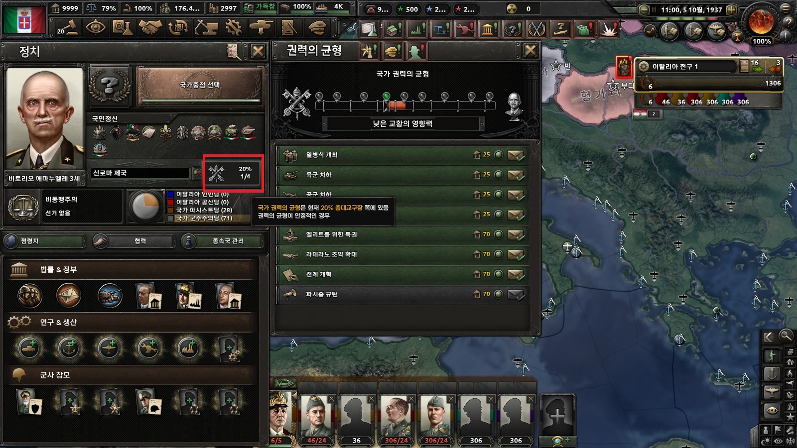 전쟁나면 연합국에 가입한다. 영국이 참전요구할 때 동의하는 것은 방어전쟁으로 취급된다. 72부대 1사단은 스위스 전체에 지역방어명령을 두어 점령당하지 않도록 한다. 방어부대는 편제도 최신식으로 변경해주어야 한다